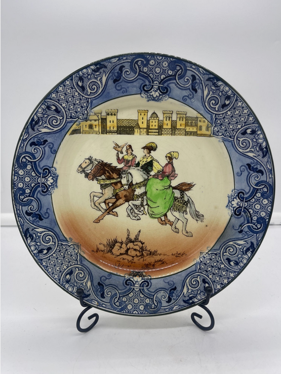 Antique 19th Century Chinoiserie Brown Transferware Plate and Bowl Falconer Mongol Huntsman Sana Pat