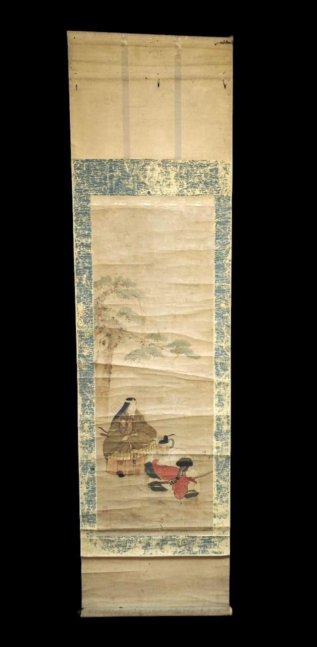 Antique Japanese Hanging scroll Kakejiku The Princess's Falconry L:200cm/78inch