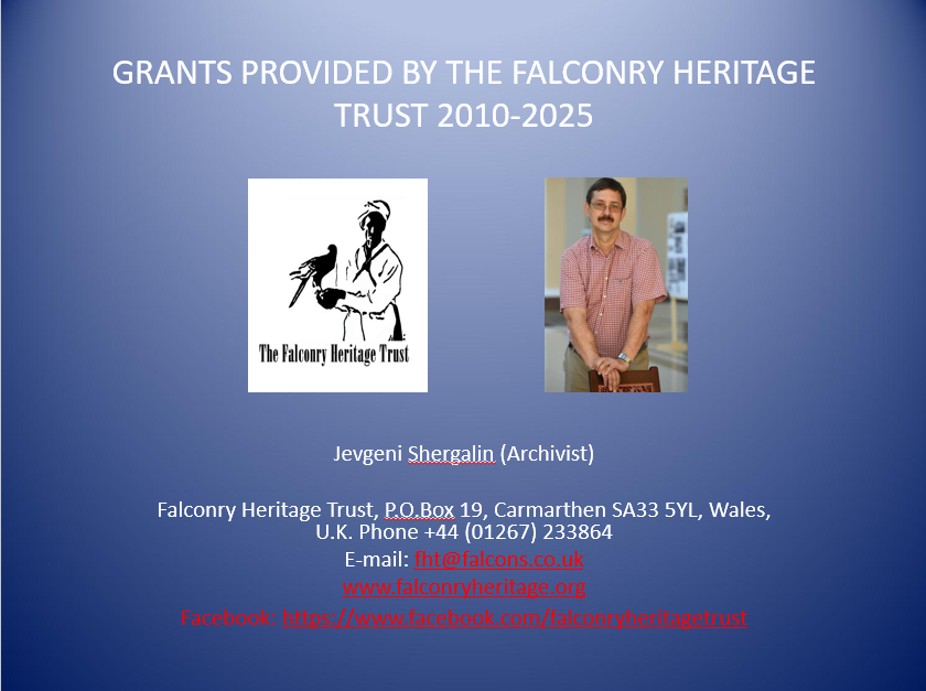 GRANTS PROVIDED BY THE FALCONRY HERITAGE TRUST 2010-2025