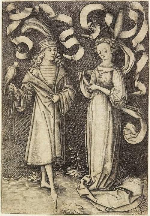 Israhel van Meckenem (1445-1503) - The Falconer and a Noble Lady, c. 1495-1503 - engraving