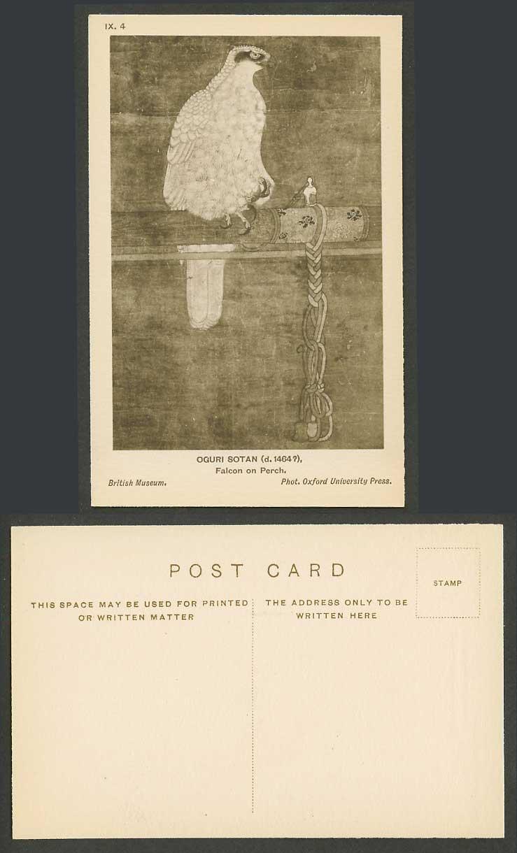 Japan Old Postcard Oguri Sotan Falcon on Perch, Eagle Bird British Museum London
