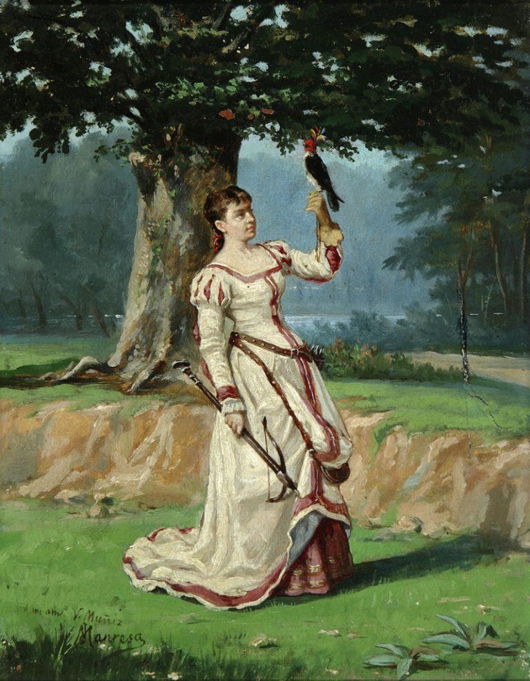 Lady with a Falcon originally by Jose Maria Manresa y Ortuno (1842-1884)