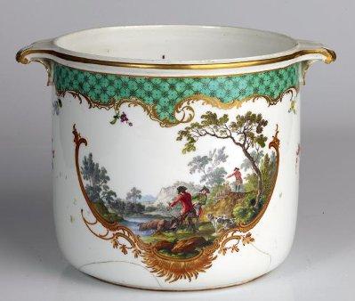 A bottle-shaped tap featuring depictions of deer hunting and falconry for ducks