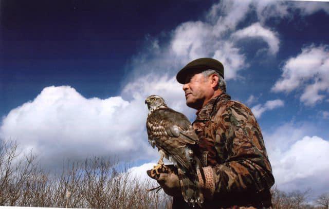 Hawking and bird hunting with nets; two hawkers on horseback by Jost Amman
