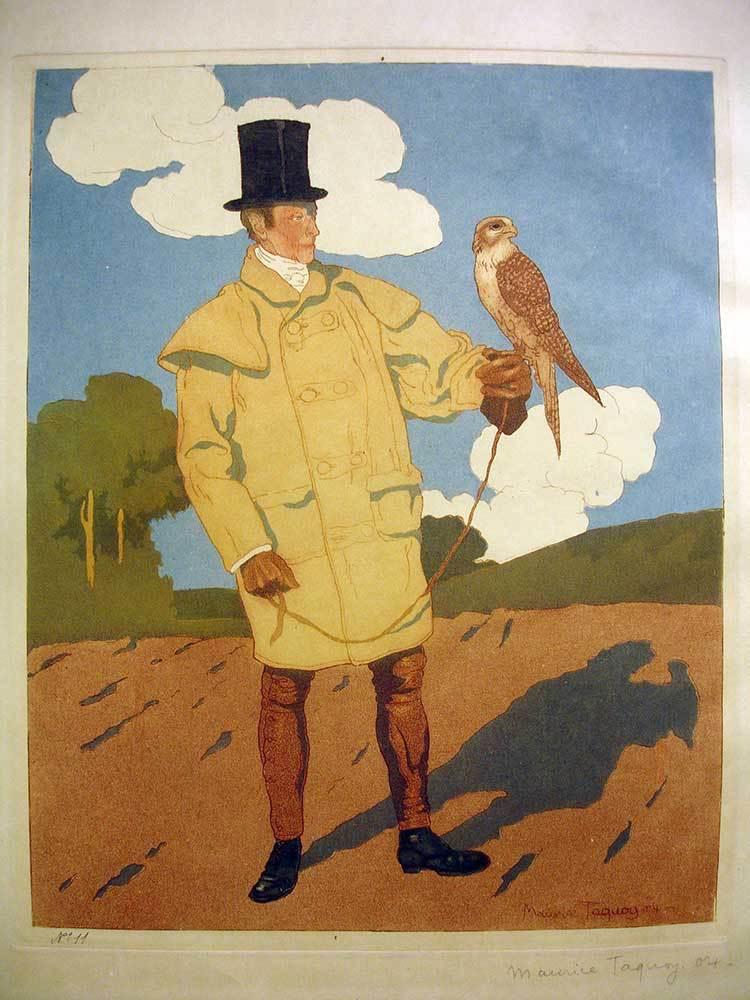 Maurice Taquoy (1878-1952)  Color Lithograph: Falconry