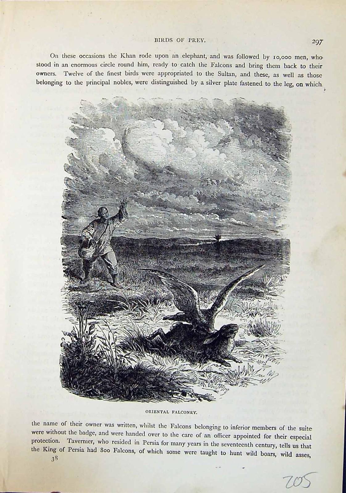 Old Brehm Jones C1860 Cassell'S Birds Oriental Falconry Hunting Hare Victorian
