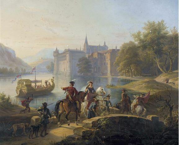 Oil on Copper Painting of a Hawking Scene, Carel Van Falens (1683-1733)