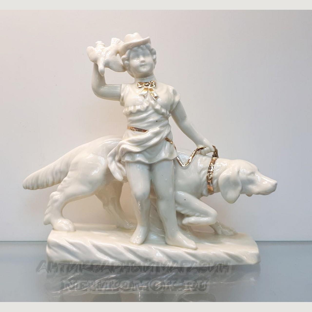 Porcelain figurine ‘Young Hunter’ (Hunting with a dog and a falcon). Germany.