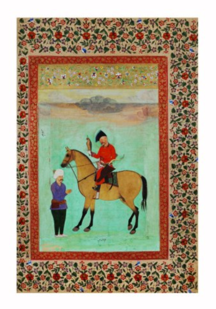 Shah Abbas I on horseback with a falcon, around 1620. Moghul miniature from Isfahan