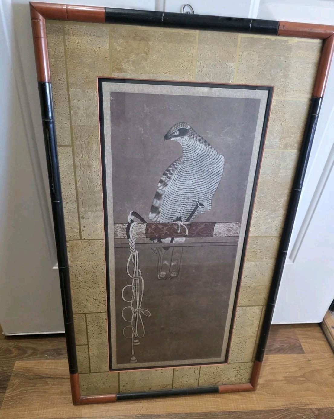 THE Hawk BIRD PAINTING ASIAN MOUNTED SCROLL Takagari Japanese Falconry Art