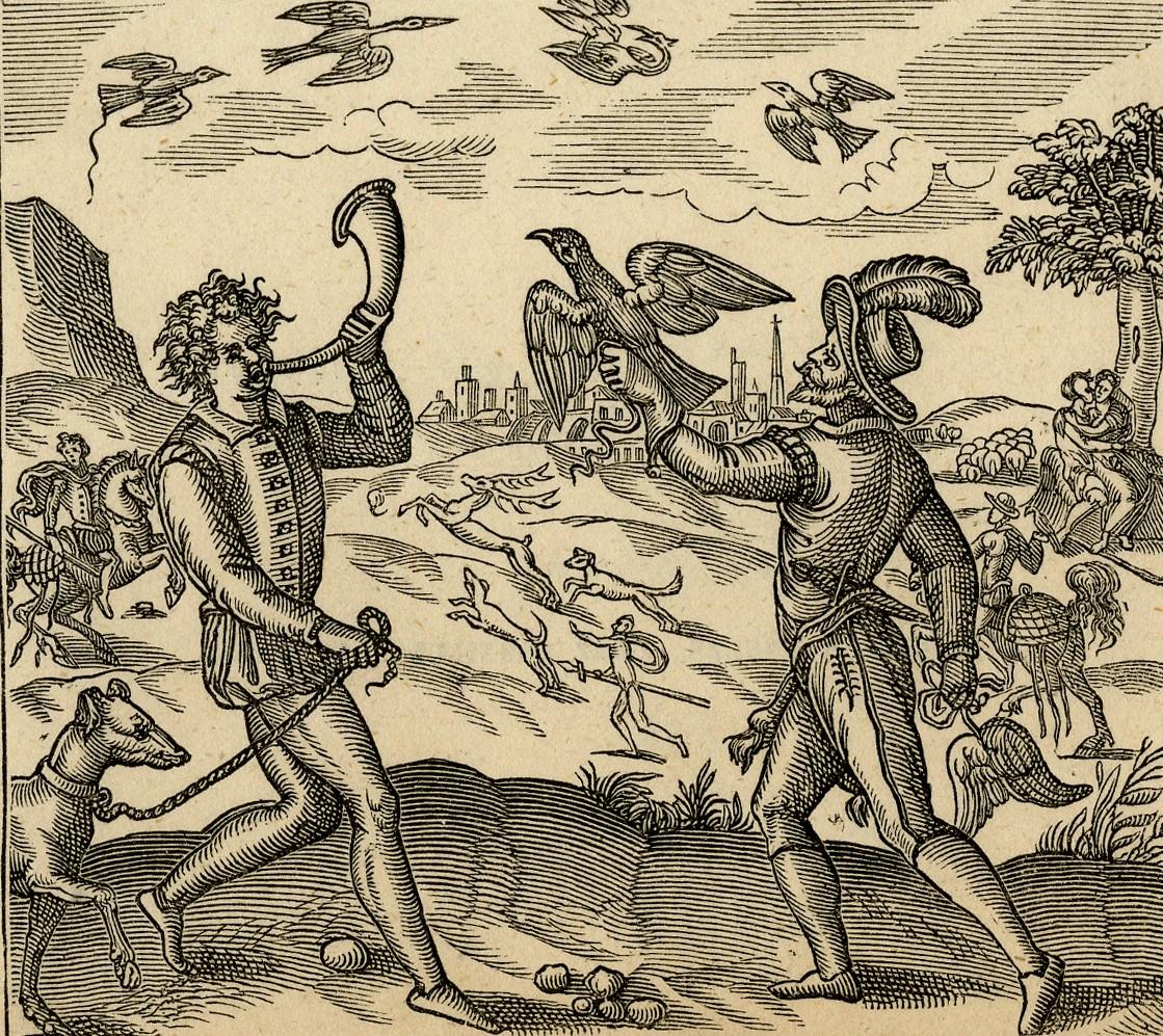 Antique Print-PASTIMES-BACCHUS-HUNT-FALCONRY-MUSIC-LOVE-Groeningen-c.1572