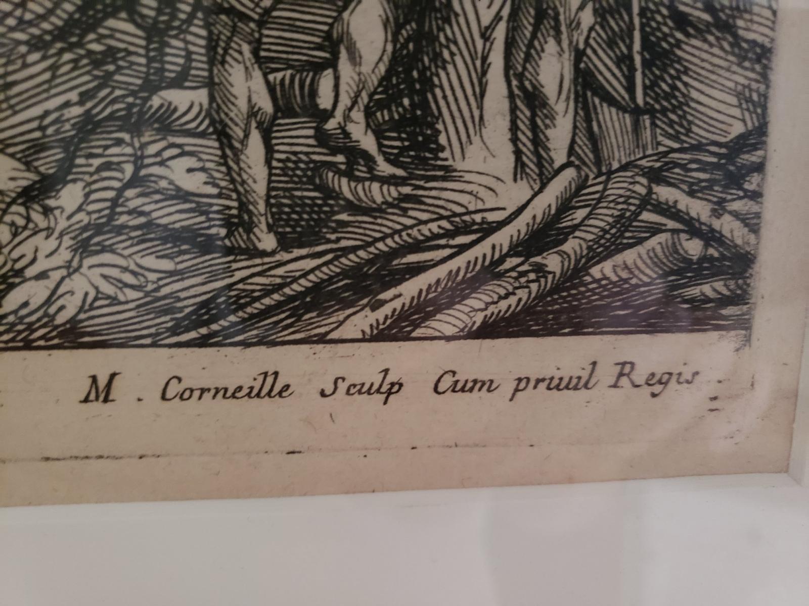 Antique print related to falconry. The artist is either Michael Corneille (1601-64) or his son Micha