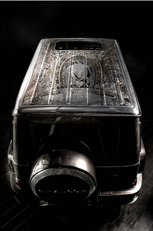 Gyrfalcon on roof of car