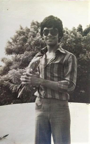 An old photo from Vanod Bapu, from Gujarat in India, holding a Lugger from Bob Dalton 1985