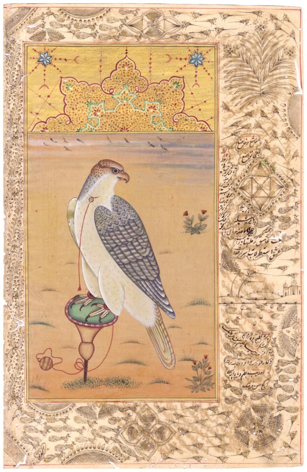 Birds Miniature Painting Of Falcon Bird Vintage Fine Art On Paper 7x10.5 Inches