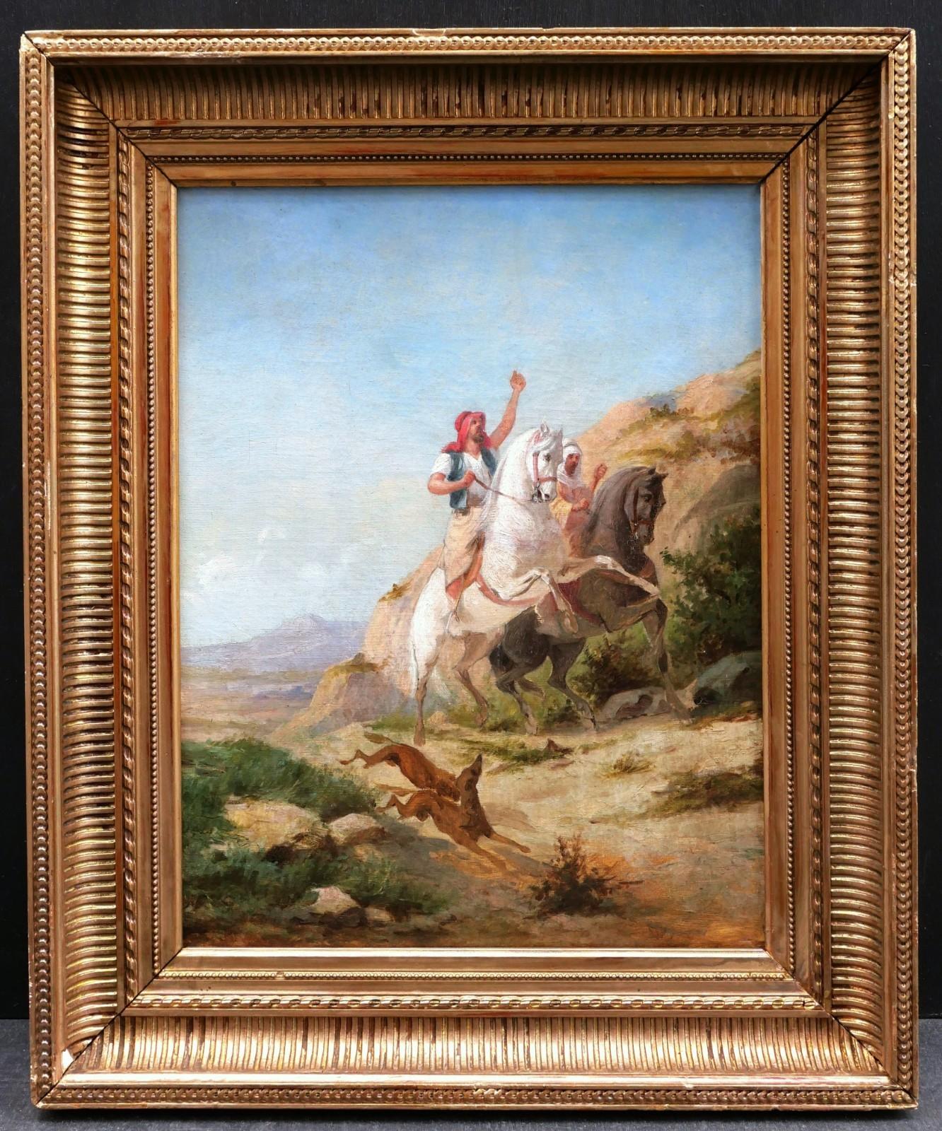 French Oil Painting Orientalist Orientalism Arab Horsemen Falconry Oil Landscape