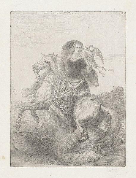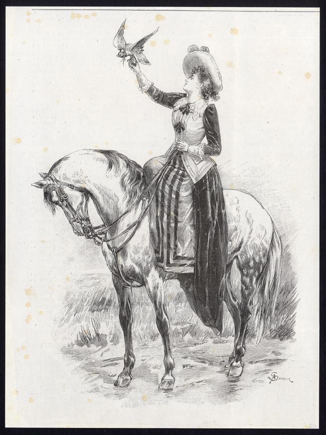 Lady falconer made by A. Sandoz after anonymous artist in c. 1880