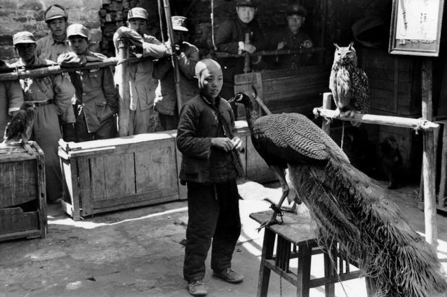 Nationalist soldiers looking at a circus, Jiangsu. Nankin. China, 1949