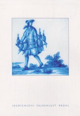The falconry motif of a staircase tile of Falkenlust Hunting Lodge, Bruhl, Germany.